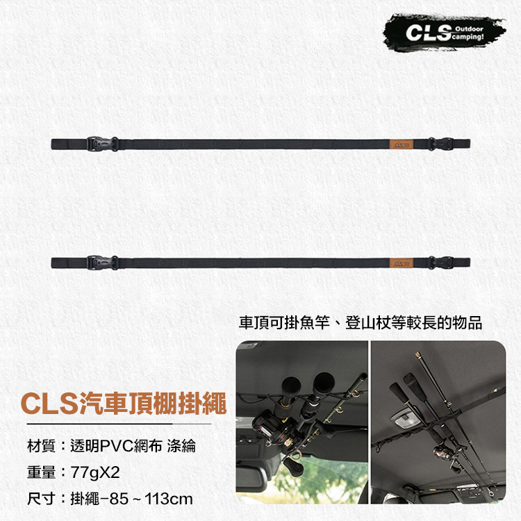 目前位置: 首頁 > 其他/... > 車用配件 > (全台瘋)CLS戶外車用釣竿收納掛鉤 隨身車頂掛兜 自駕遊旅行車內收納掛網袋 掛繩