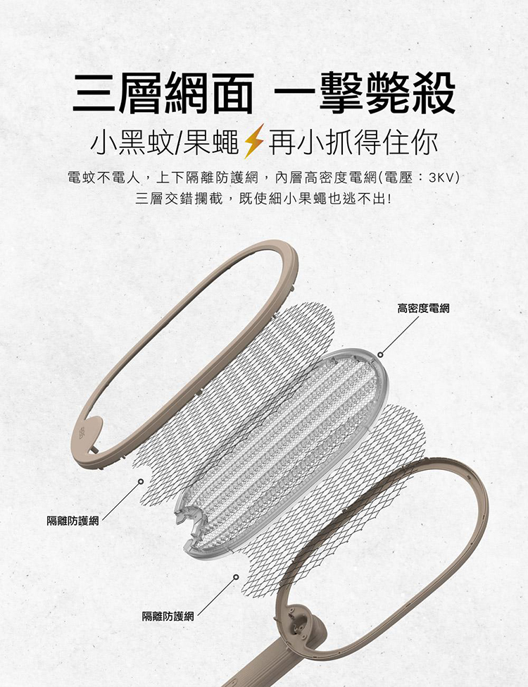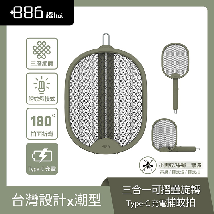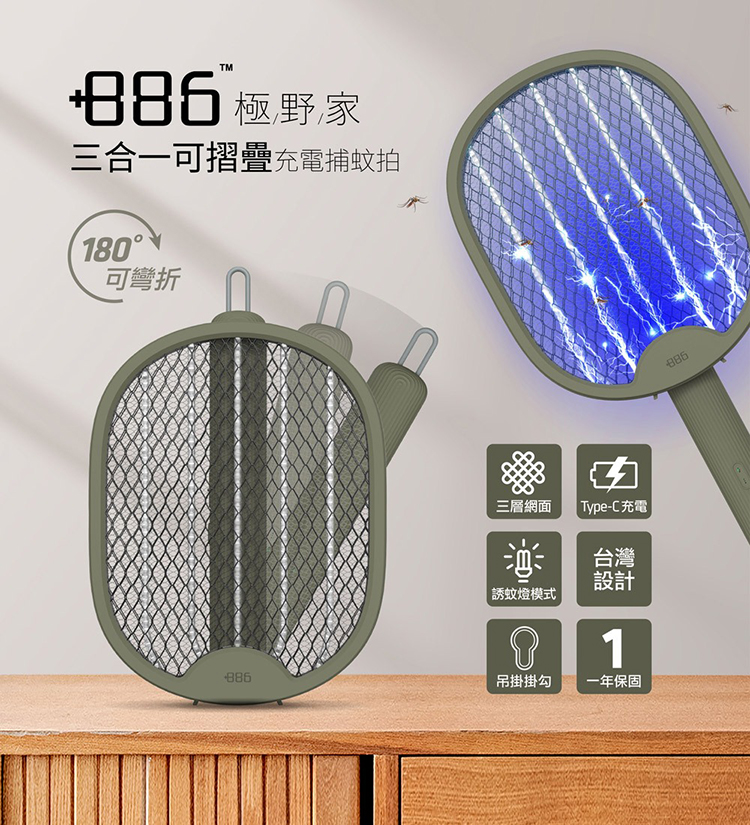 品名:[極野家] 三合一可摺疊Type-C充電捕蚊拍/三層網面