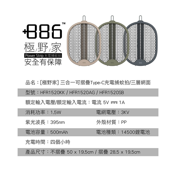 +886™ 極野家 Power Strip 充電捕蚊拍 安全有保障